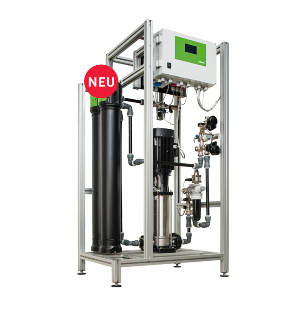 Die platzsparende Umkehrosmoseanlage GENO®-OSMO-X wird zur Entsalzung von Trinkwässern eingesetzt. Das erzeugte Permeat findet Verwendung in der Medizintechnik oder der Lebensmittel- und Getränkeindustrie. Über einen Feinfilter inkl. Druckminderer gelangt das Wasser über das Eingangsmagnetventil zur Hochdruckpumpe. Die Pumpendrehzahl lässt sich über einen Frequenzumrichter so einstellen, dass die anlagenspezifische Permeatleistung erreicht wird. Die Permeat-Ausbeute der GENO®-OSMO-X beträgt bis zu 80 %. Die GENO®-OSMO-X arbeitet energiesparend, lässt sich an gängige BUS-Systeme anbinden und ist mit integriertem Datenlogging und mehrsprachigem Touchpanel ausgestattet. Vorbereitend zur Umkehrosmose ist die AVRO-Technik einsetzbar.