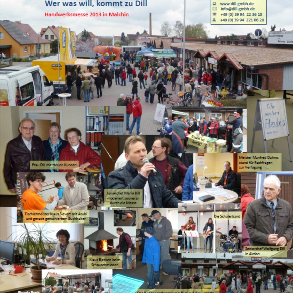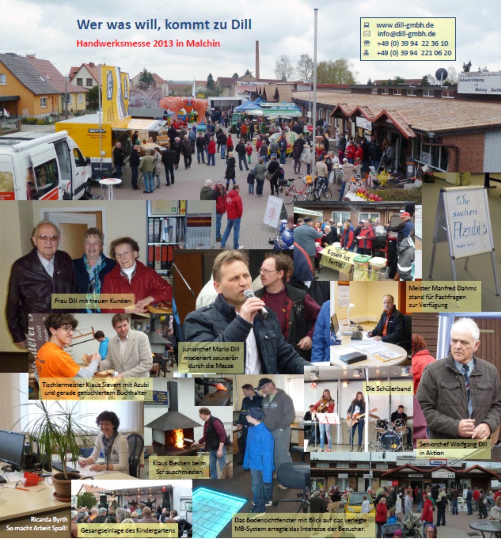 Auch Im Jahre 2013 fand in Malchin (Mecklenburg-Vorpommern) die von MULTIBETON-Partner Dill traditionell ausgerichtete Handwerksmesse statt. Dieses Mal im neuen Firmengebäude! Die Unternehmerfamilie Dill hat mit den beiden Firmen sehr viel Arbeit ins neue Firmendomizil gesteckt, um rechtzeitig zur Messe fertig zu sein. Dass der Umzug gelungen ist, davon konnten sich die zahlreichen Besucher der Messe überzeugen. Schauschmieden und -tischlern, Live-Musik einer Schülerband und der Kindergartengruppe, eine Tombola sowie die ausgezeichnete Versorgung des Leiblichen Wohles umrahmten die ehrliche Leistungsschau des lokalen Handwerks. Es wurden Informationen über die neue Technik angeboten und Kontakte zu Kunden geknüpft.
